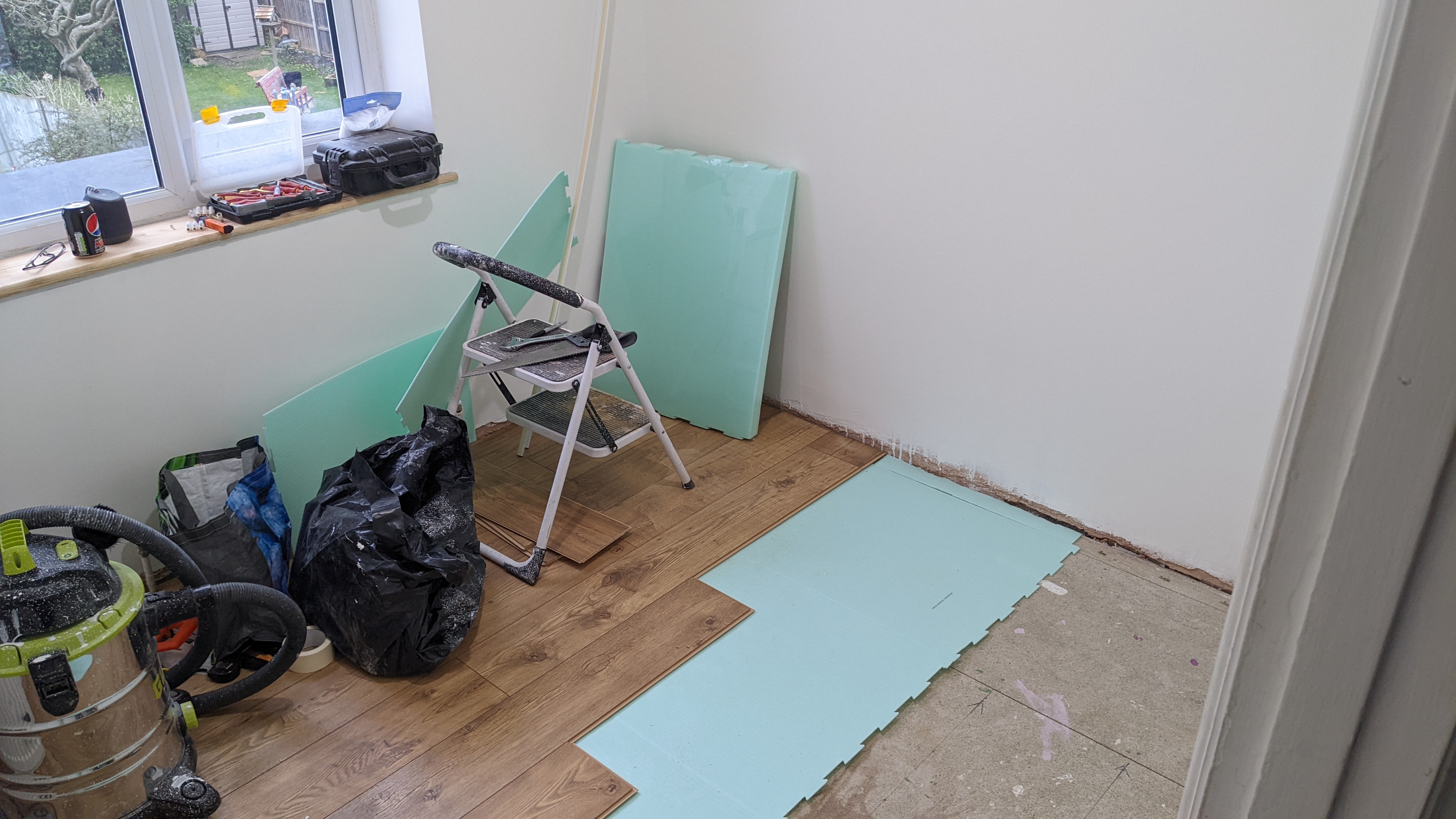 Laying the floor in the office gives a real feel of progress.